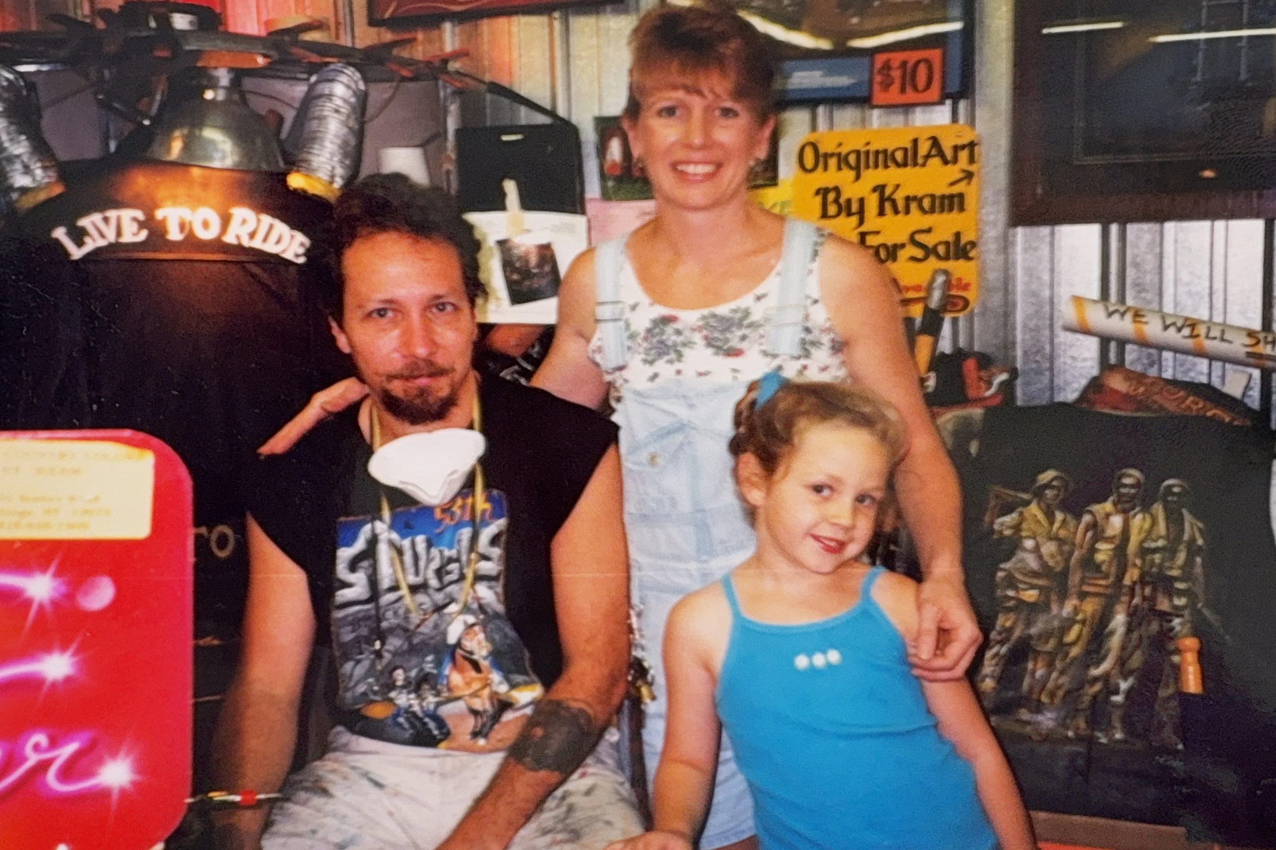 Mark Gardner—known in the biker world as “Kram”—rose to fame in the 1990s as a leading biker artist. His bold, airbrushed style appeared everywhere from Sturgis and Daytona Bike Week to custom motorcycles, leather jackets, and vehicles across the country. His work was featured in Super Cycle Magazine centerfolds and commissioned by Wilson Leather, making his art an iconic part of biker culture.